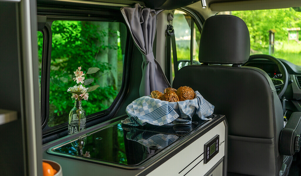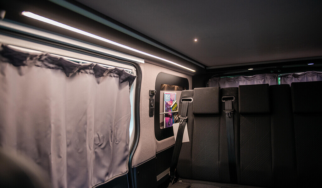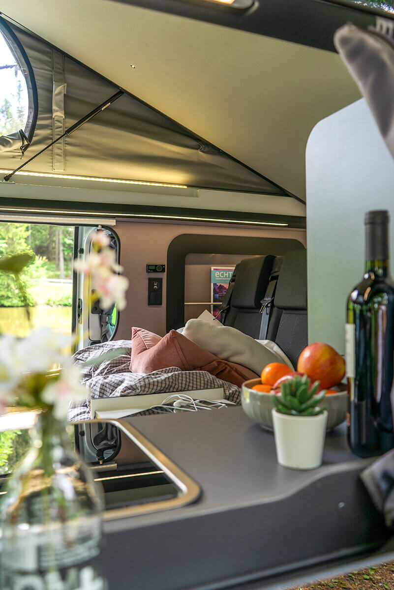 Tagsüber ist dein Microliner lichtdurchflutet – nachts kannst du den Innenraum komplett abdunkeln und genüsslich träumen