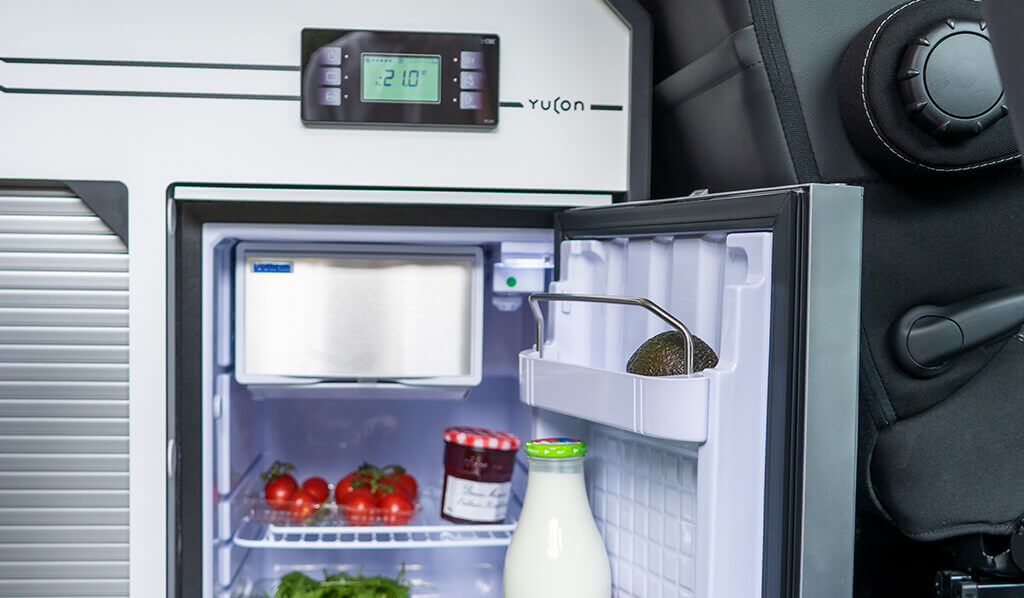 … bist du durch einen 49-L-Kühlschrank, 80-L-Frischwassertank, AGM Batterie in Serie und vieles mehr